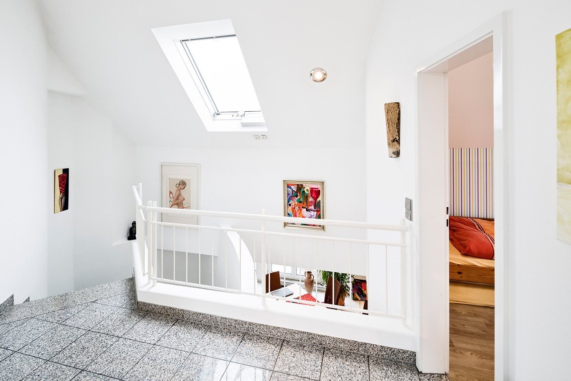Diese exklusiv von uns angebotene Maisonette-Wohnung erstreckt sich über zwei Dachgeschoss-Etagen eines architektonisch anspruchsvollen Mehrfamilienhauses, das im Jahre 1994 auf einem 891 m² großen Grundstück errichtet wurde.